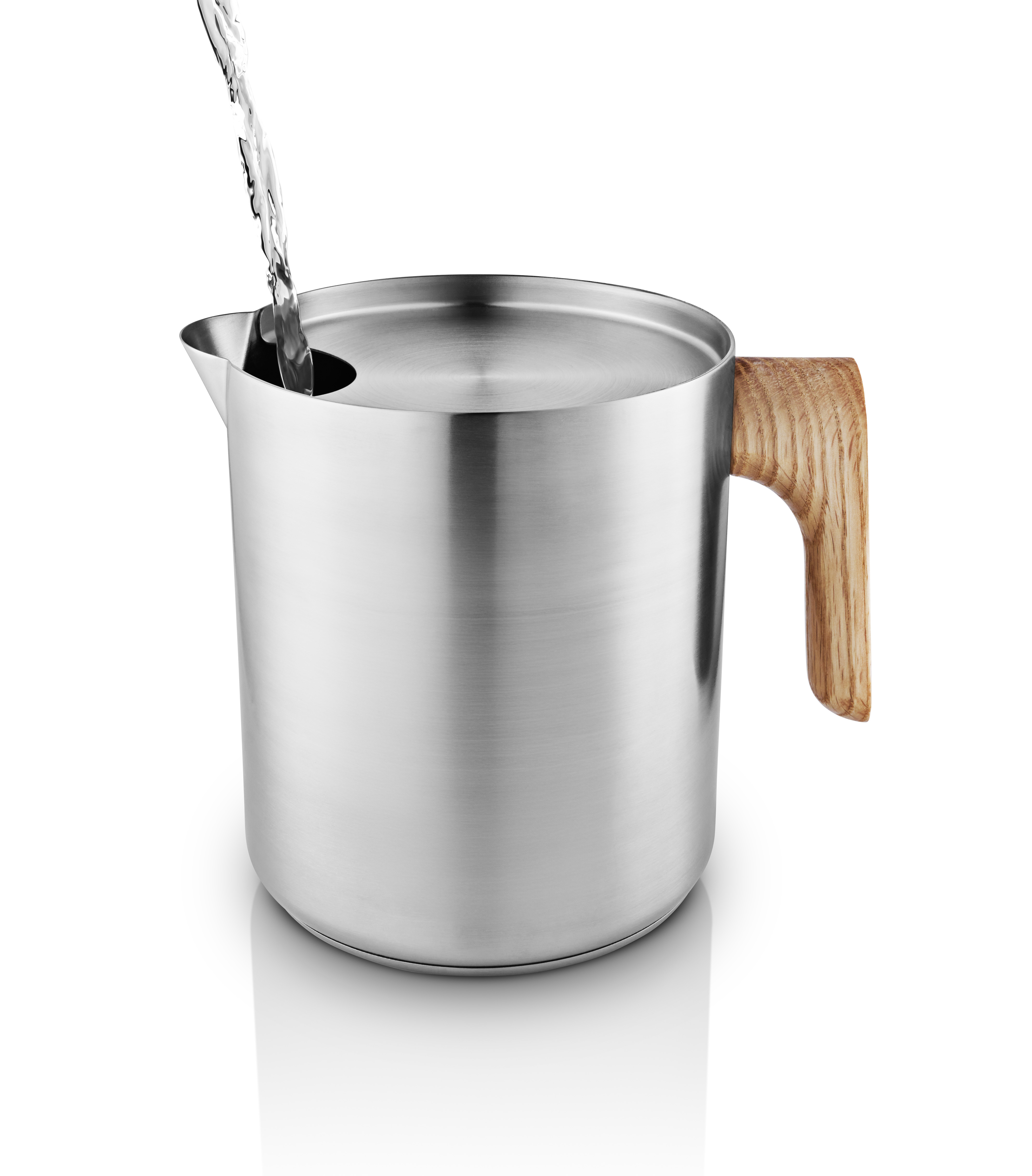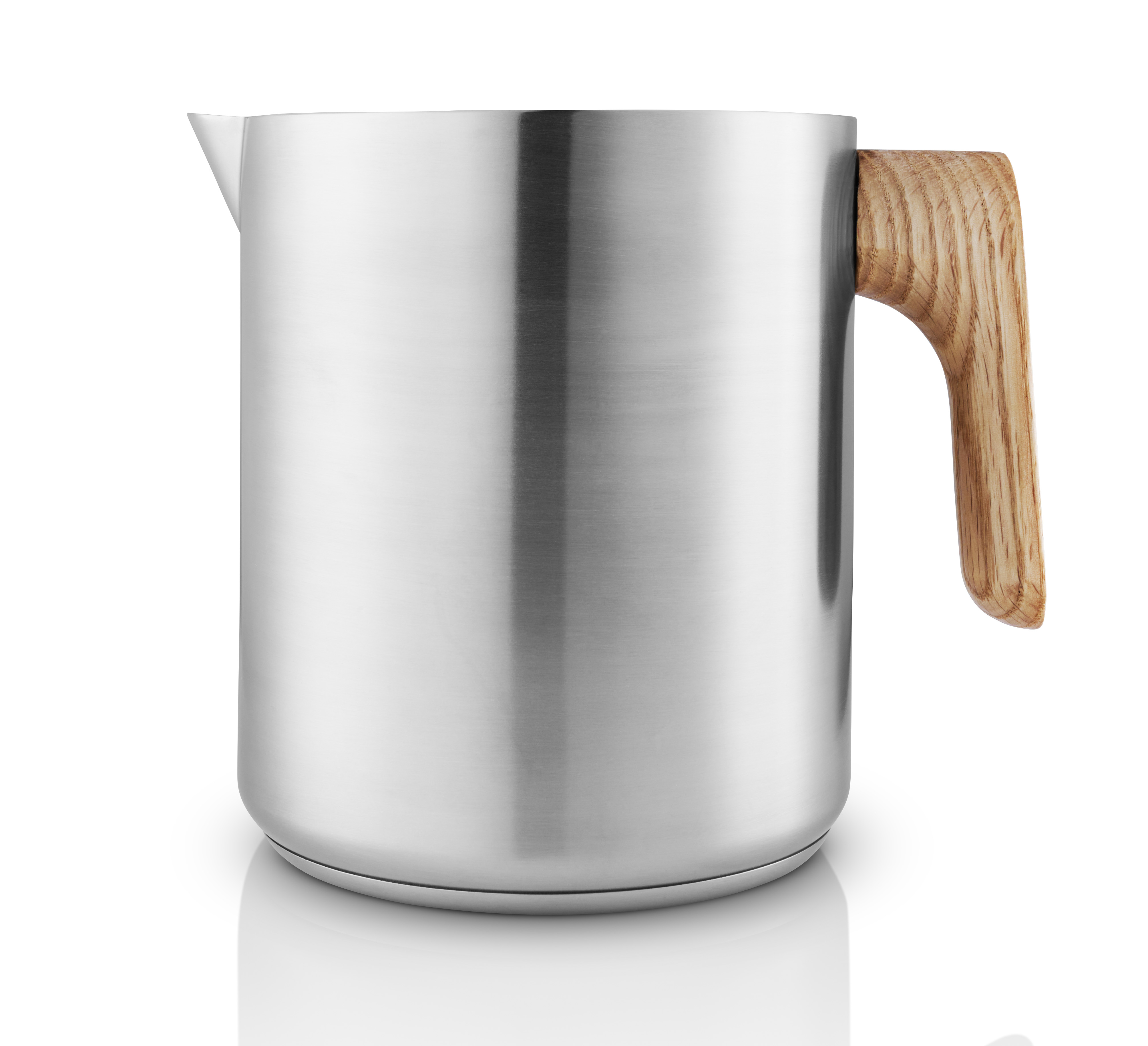Nordic Kitchen -vesipannun avulla veden keittäminen kahvia, teetä tai vaikka pikakaurapuuroa varten onnistuu mutkattomasti liedellä: vesipannu soveltuu kaikille liesityypeille - myös induktiolle. Täyttäminen on helppoa kannessa olevan aukon läpi. Tamminen kahva ei kuumene liedellä ja on lisäksi kaunis yksityiskohta. Tyhjennä vesipannu aina käytön jälkeen, jolloin sisäpuoli pysyy puhtaampana. Kalkinpoisto tarvittaessa siihen sopivalla aineella. Ulkopuolen puhdistus kostealla liinalla pyyhkimällä. Lisäksi suosittelemme kahvan säännöllistä öljyämistä. Vetoisuus 1,0 l.