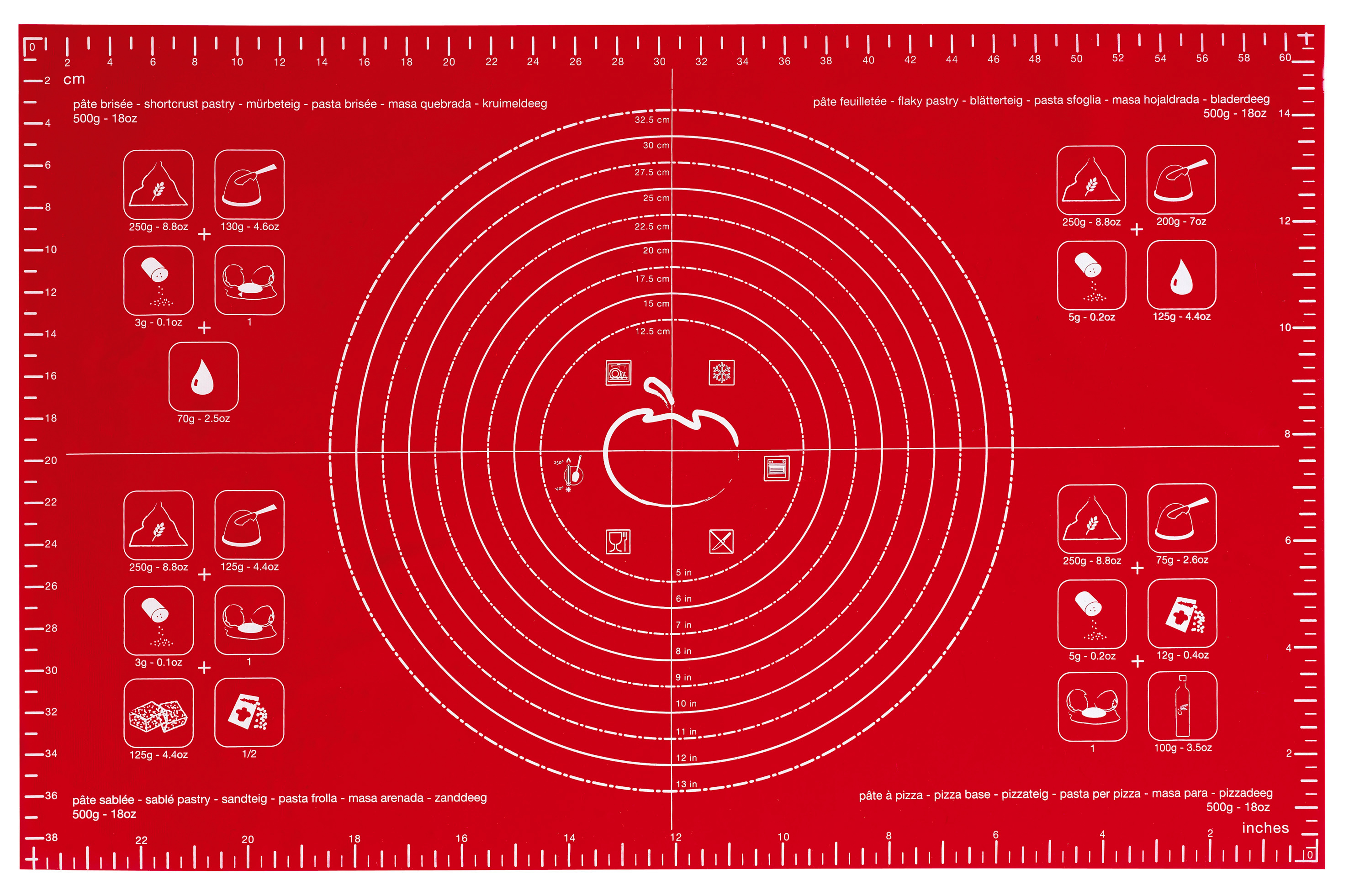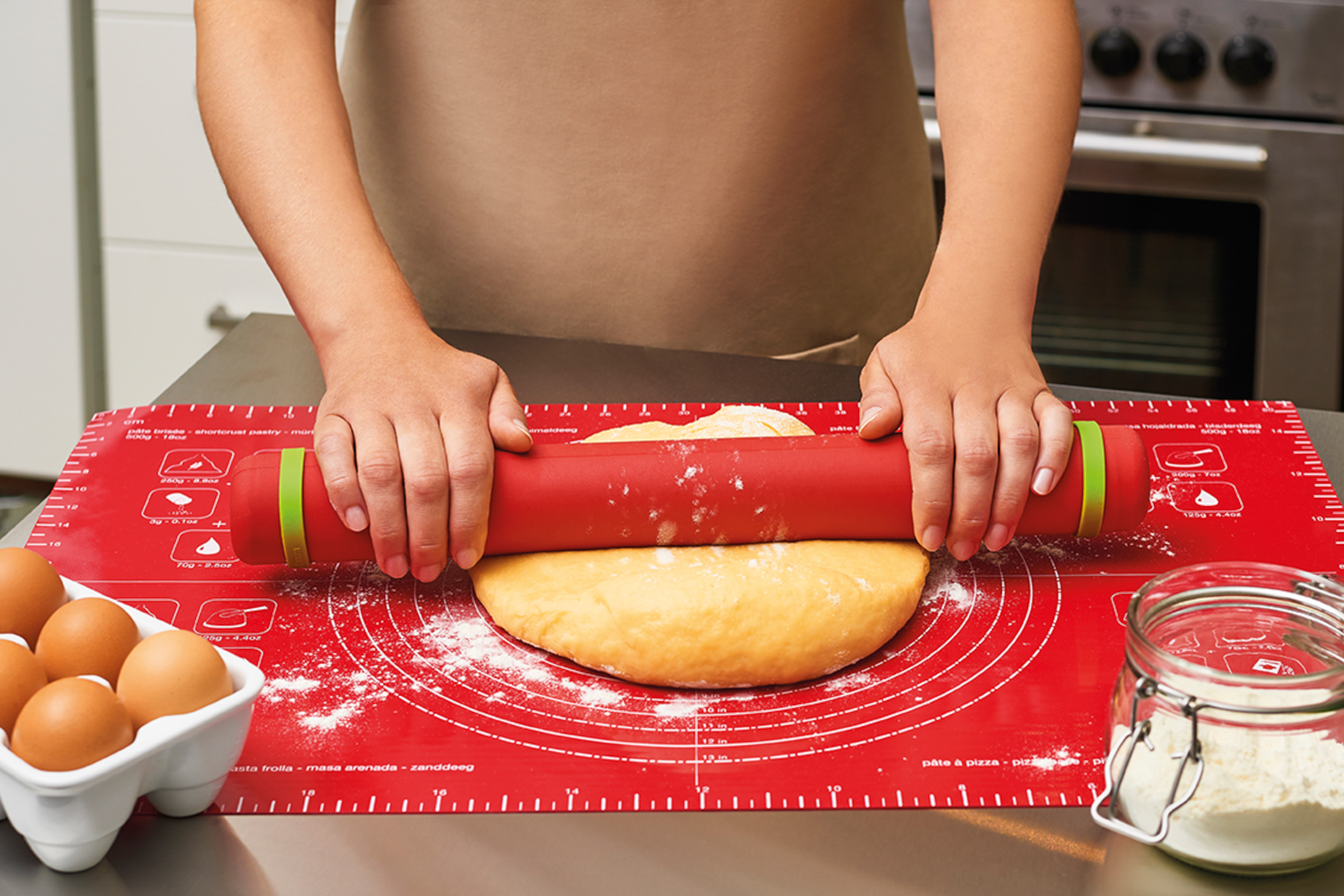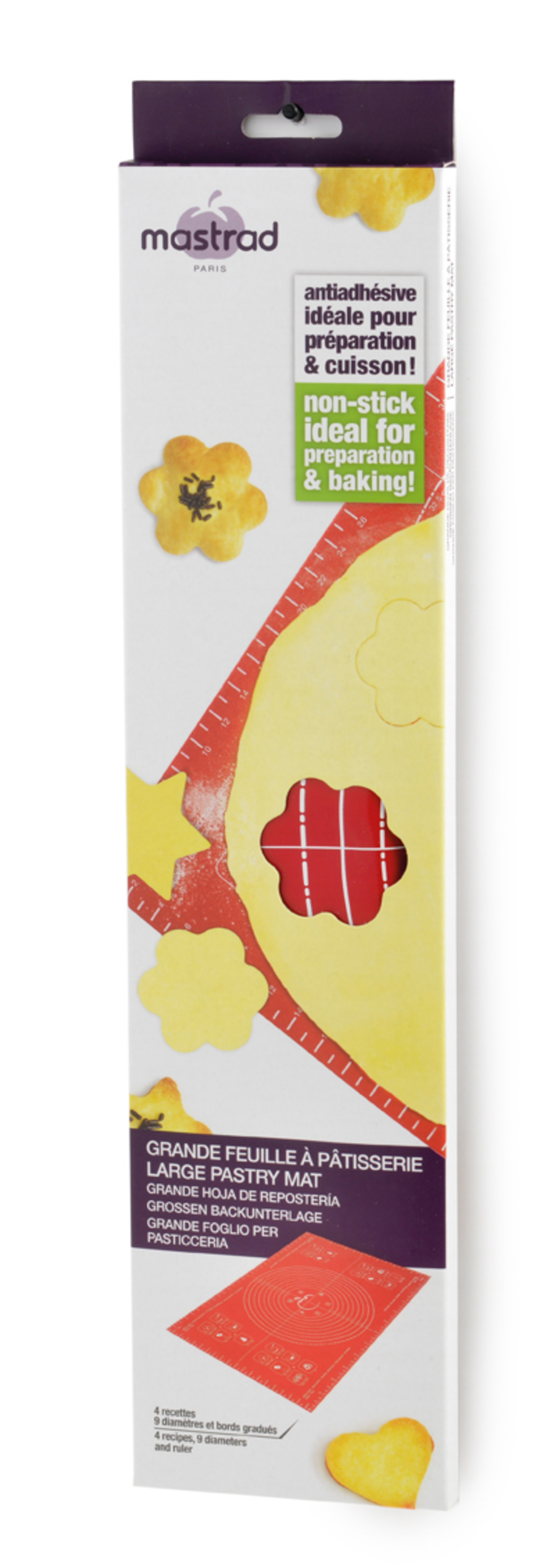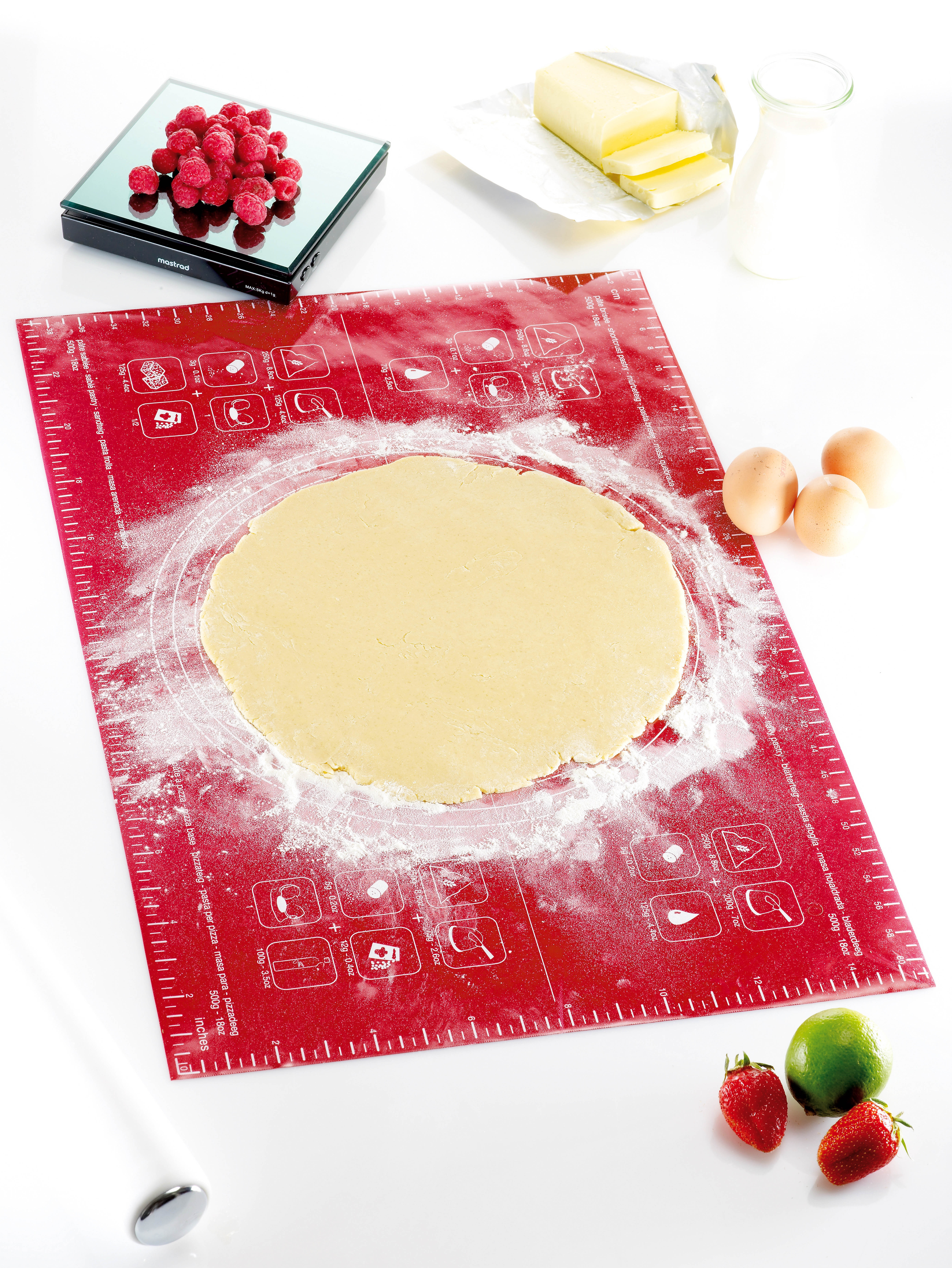 Mastradin näppärää leivontamattoa voi käyttää sekä työalustana että leivinpaperin korvikkeena uunissa. Leivontamatto on valmistettu lasikuidusta ja erittäin laadukkaasta silikonista. Silikoni on kestävä materiaali, sillä se sietää äärimmäisiä lämpötiloja muuttumatta - käyttökerrasta toiseen. Lasikuitu puolestaan takaa optimaalisen lämmön jakautumisen ja tasaisen paistotuloksen. Leivontamattoon on merkitty mitat sekä sentteinä että tuumissa. Maton koko on 40 x 60 cm, ja sitä voidaan käyttää sekä uunissa (max 230°C) että pakastimessa (max -40°C). Leivontamatto on konepesun kestävä. Vältä terävien veitsien käyttöä leivontamatolla, jotta matto ei vahingoitu.