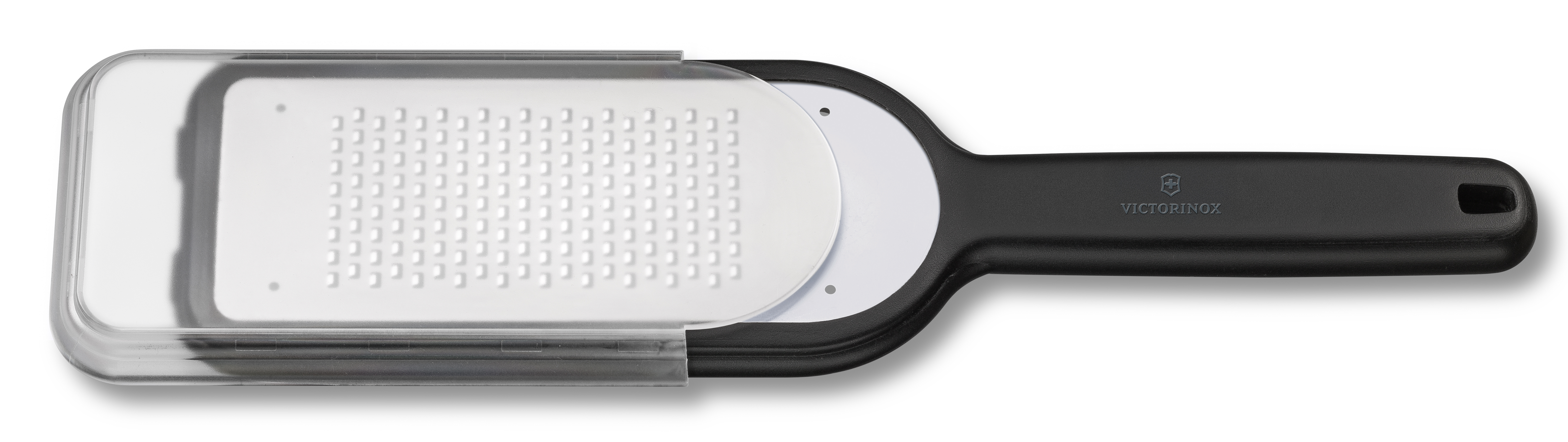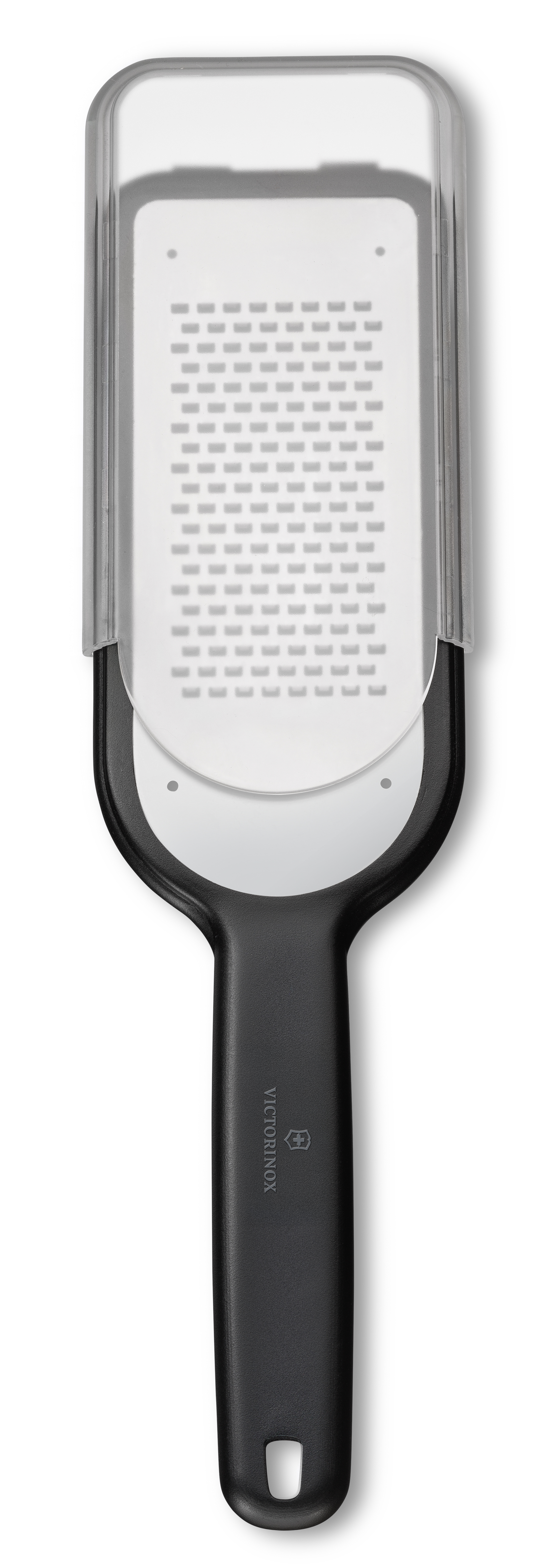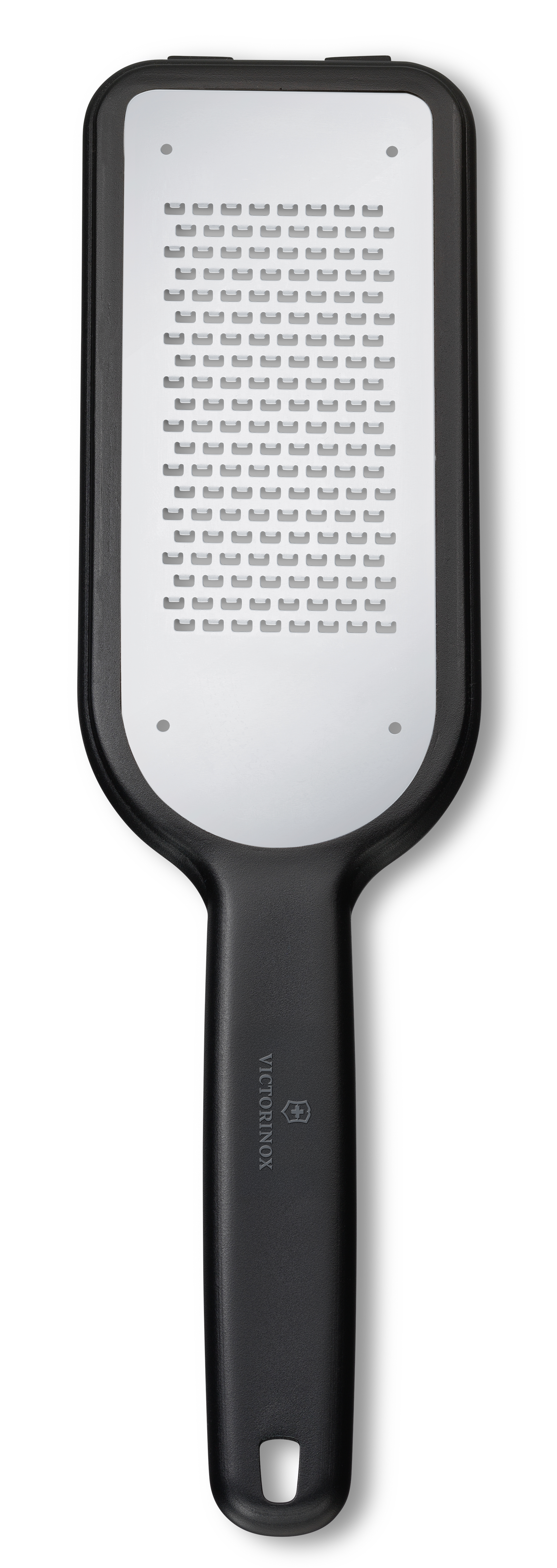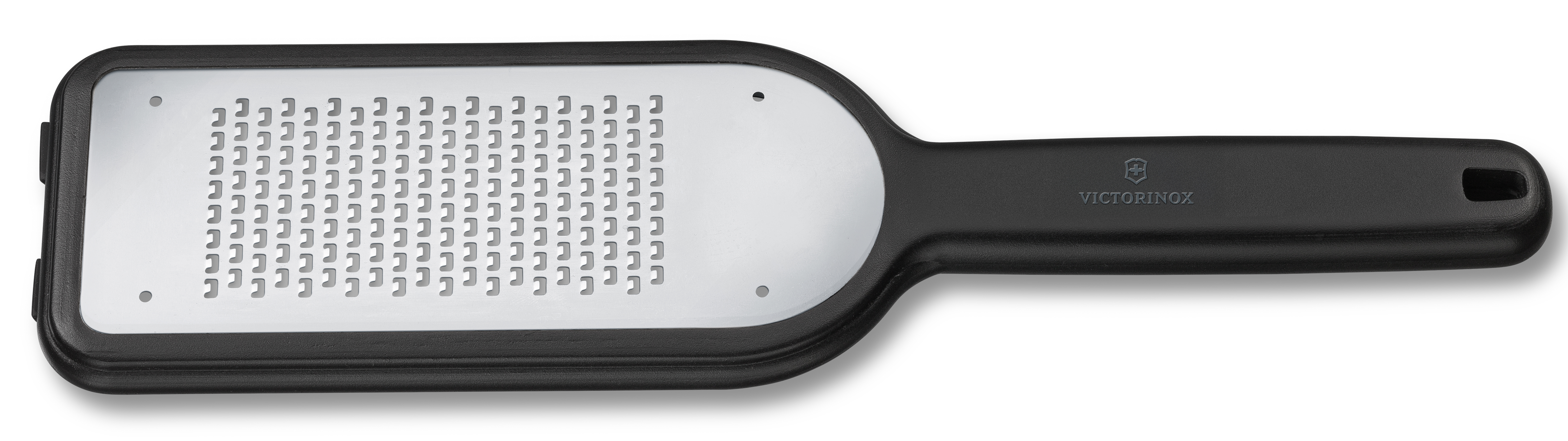 Victorinoxin hienoteräinen raastin on ihanteellinen kovien juustojen, kuten parmesanin ja pecorinon raastamiseen ilmavaksi, hattaramaiseksi raasteeksi. Lisäksi se sopii erinomiasesti mausteiden, kuten muskottipähkinän ja inkiväärin sekä sitrushedelmisen kuoren raastamiseen. Teräosan päässä on luistamattomat jalat, joiden ansiosta raastimen saa tuettua tasoa vasten. Tukevasta kahvasta saa hyvän otteen, ja muovinen teräsuoja helpottaa säilytystä. Kestää konepesun.