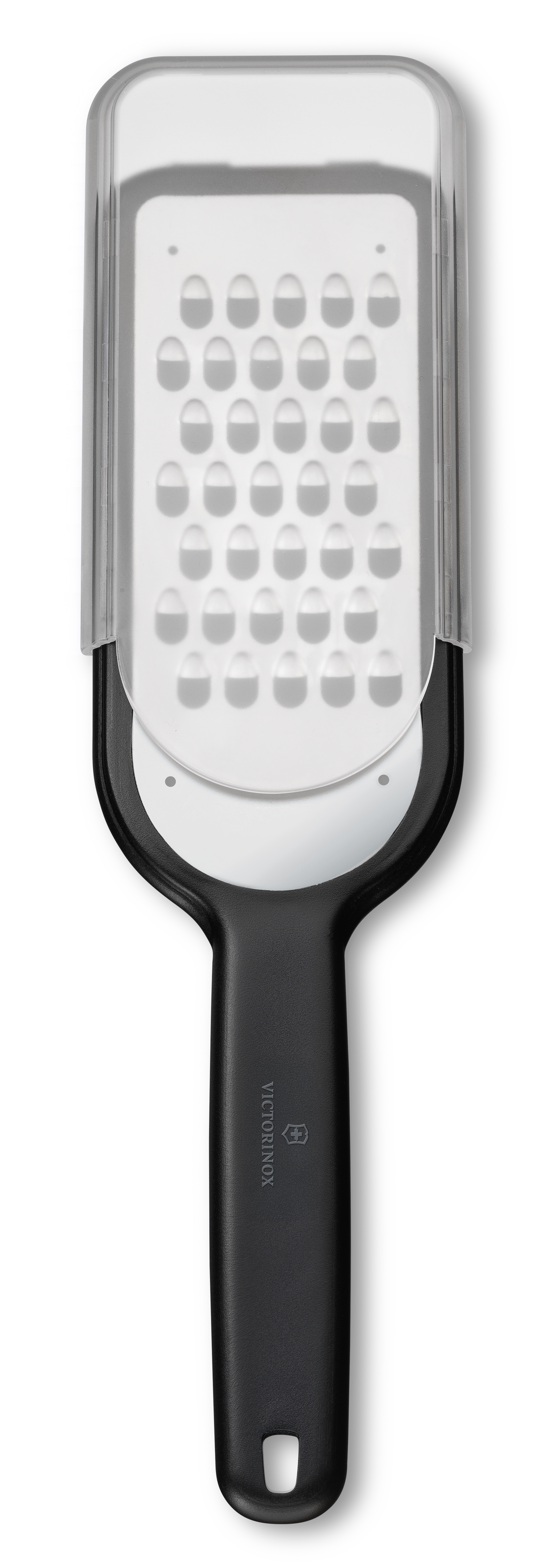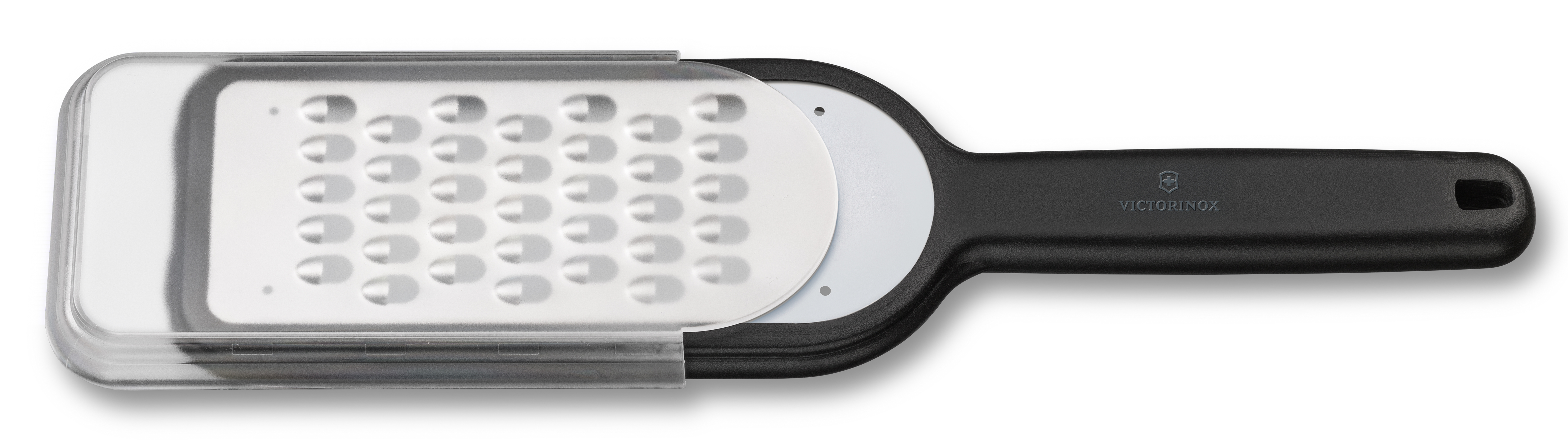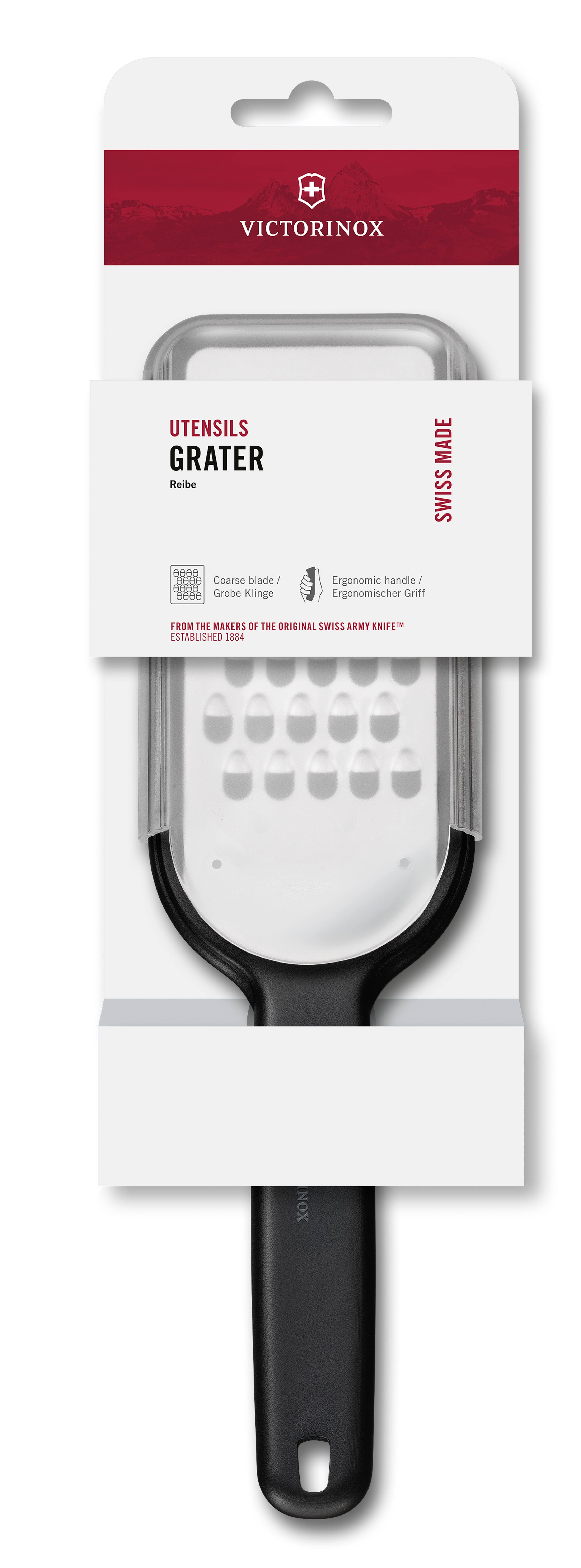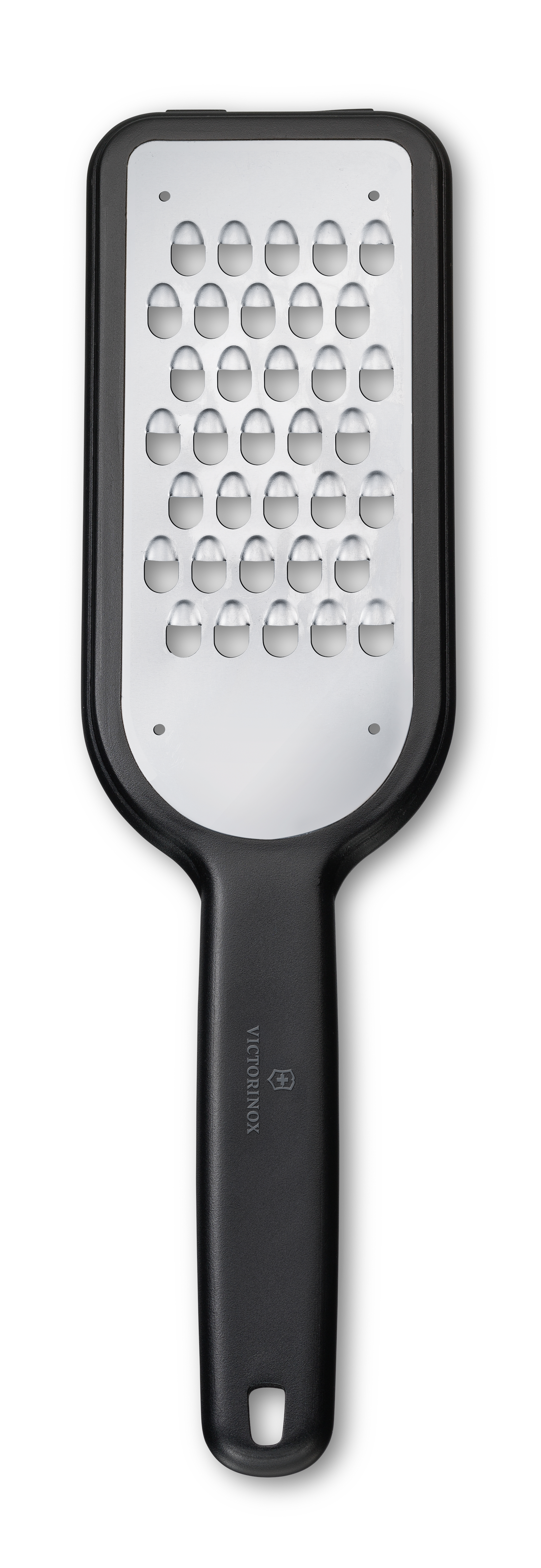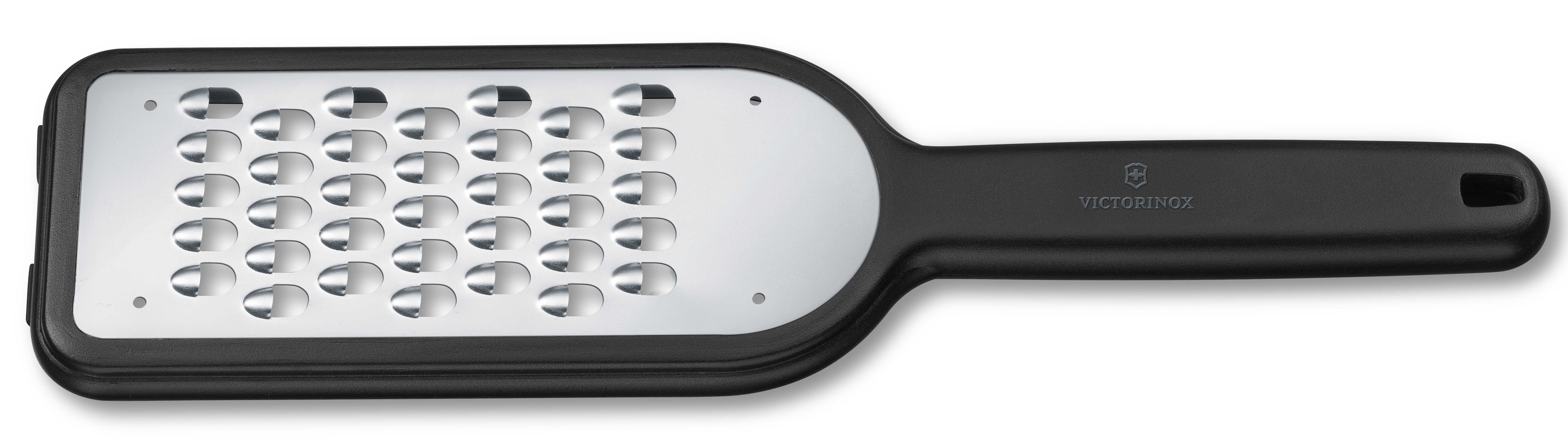 Victorinoxin karkea raastin on ihanteellinen kovien juustojen, kuten parmesanin ja pecorinon raastamiseen. Lisäksi se sopii hyvin esim. porkkanan, peruna ja juuresten raastamiseen salaatteja tai kasvispihvejä varten. Teräosan päässä on luistamattomat jalat, joiden ansiosta raastimen saa tuettua tasoa vasten. Tukevasta kahvasta saa hyvän otteen, ja muovinen teräsuoja helpottaa säilytystä. Kestää konepesun.