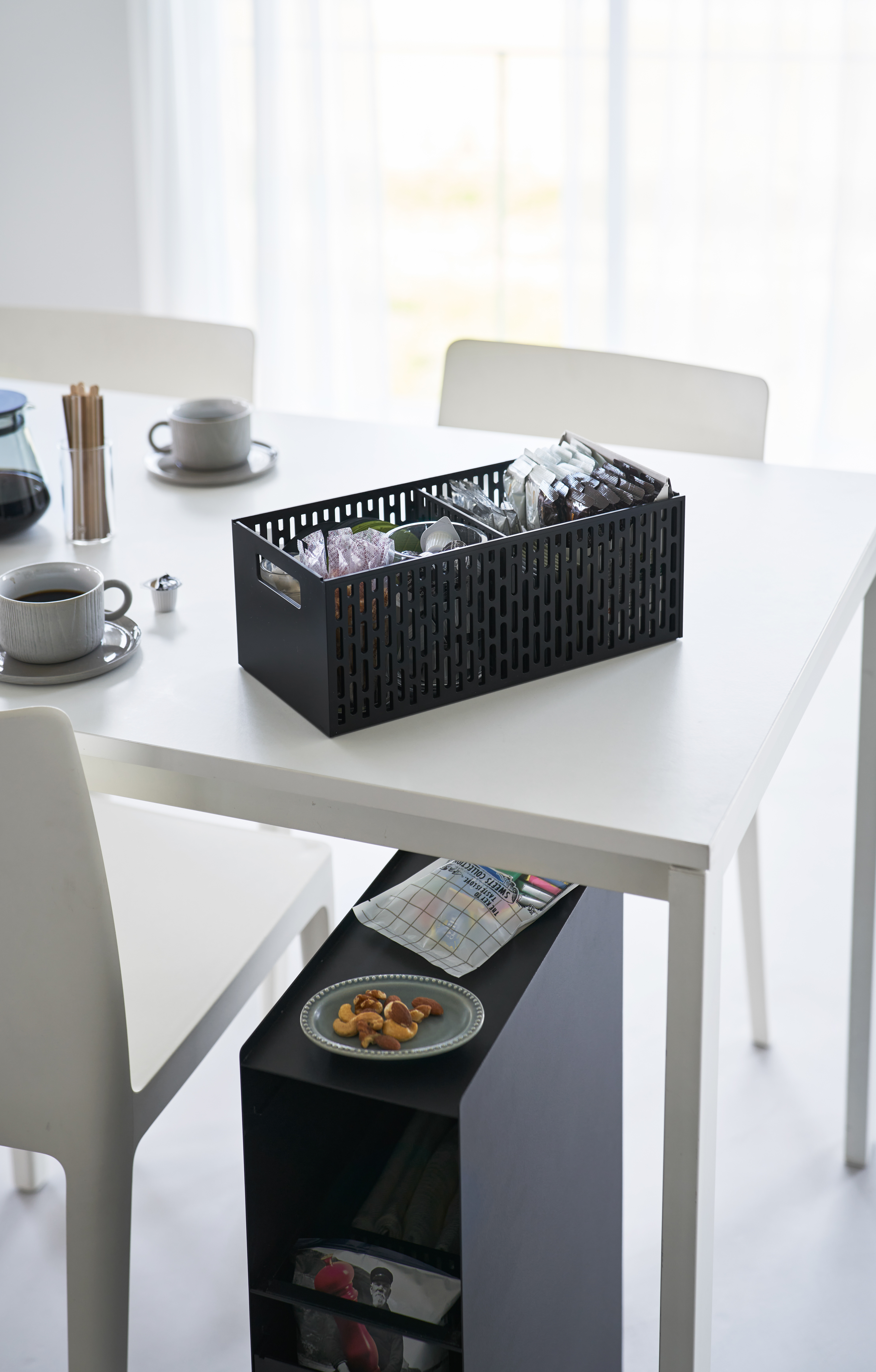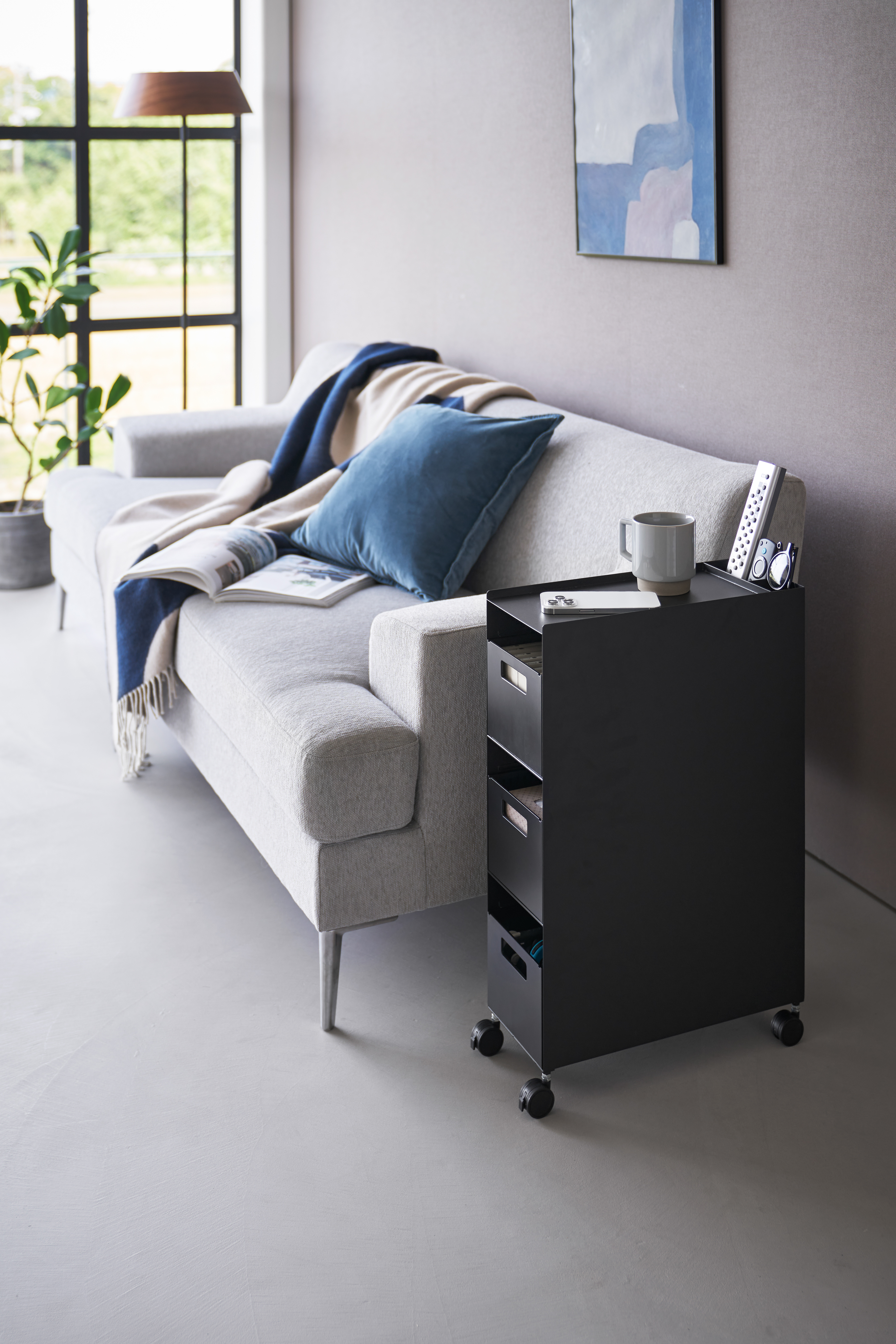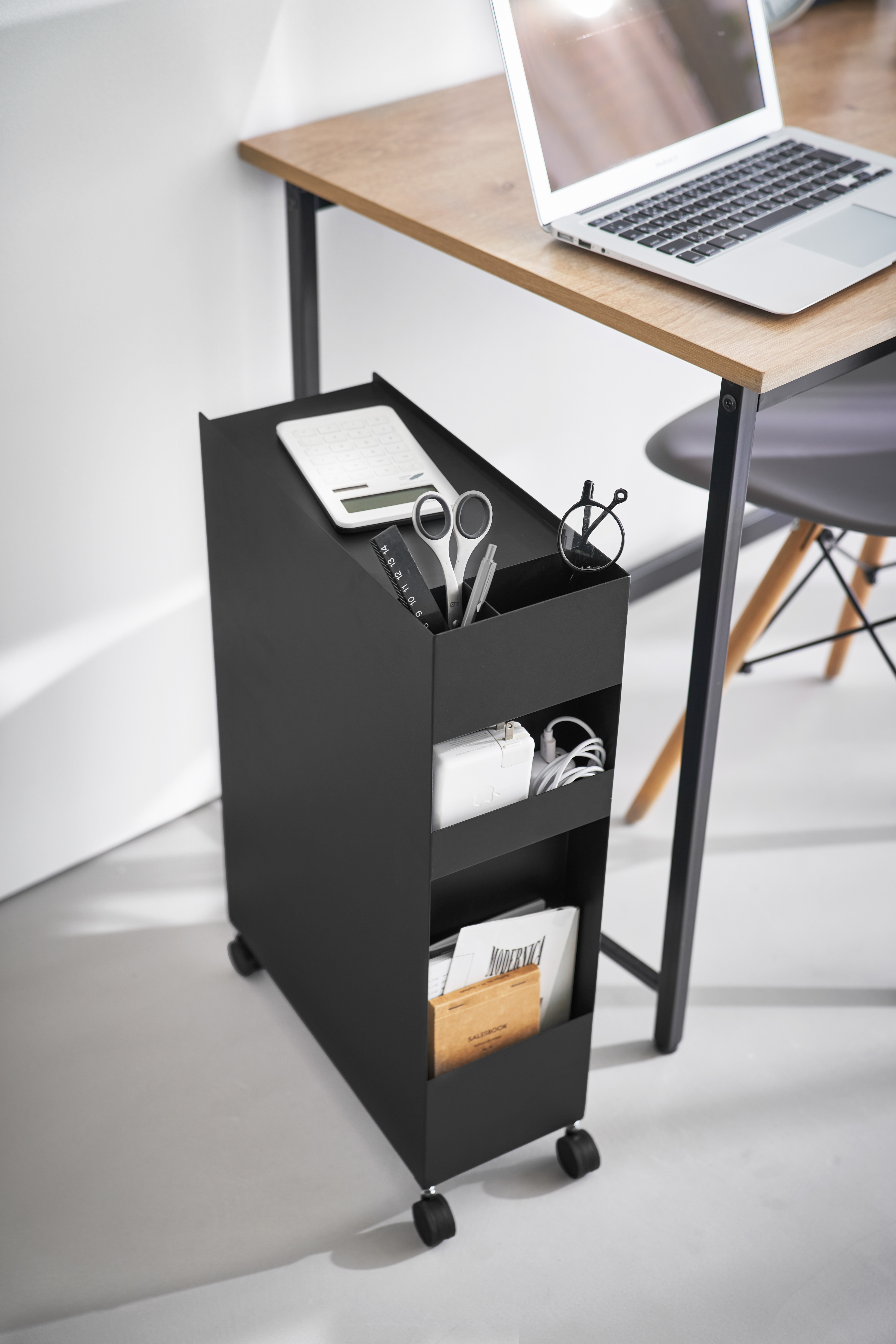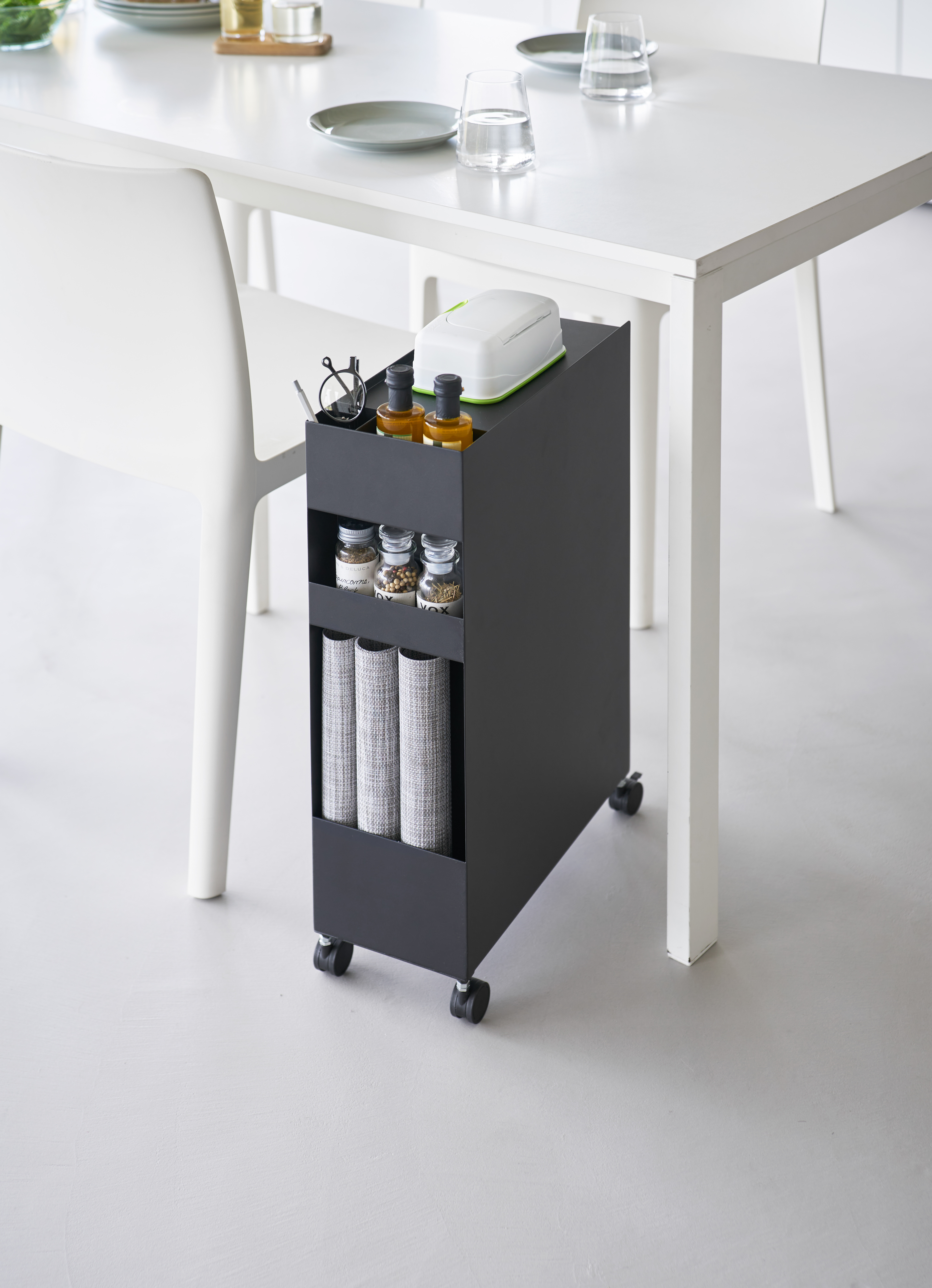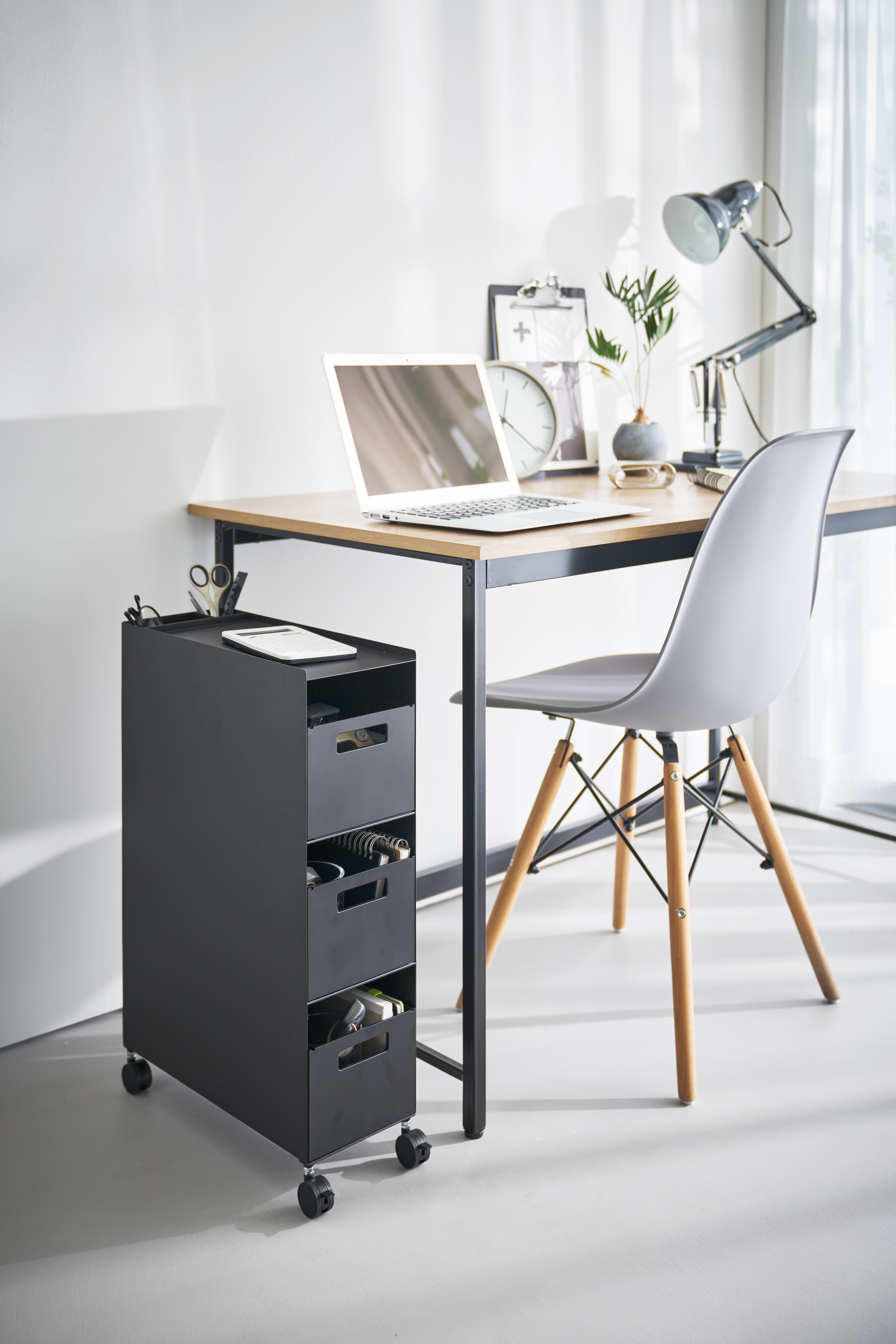 Monikäyttöinen kolmitasoinen laatikosto tuo arkeen selkeyttä ja helpottaa tavaroiden järjestämistä eri tiloissa. Laadukas teräsrakenne yhdistyy tyylikkääseen muotoiluun, jossa kolme irrotettavaa säilytyskoria tarjoavat joustavan ja helposti muokattavan säilytysratkaisun. Jokaisessa korissa on säädettävä välijakaja, jonka avulla sisältö pysyy siististi järjestyksessä.