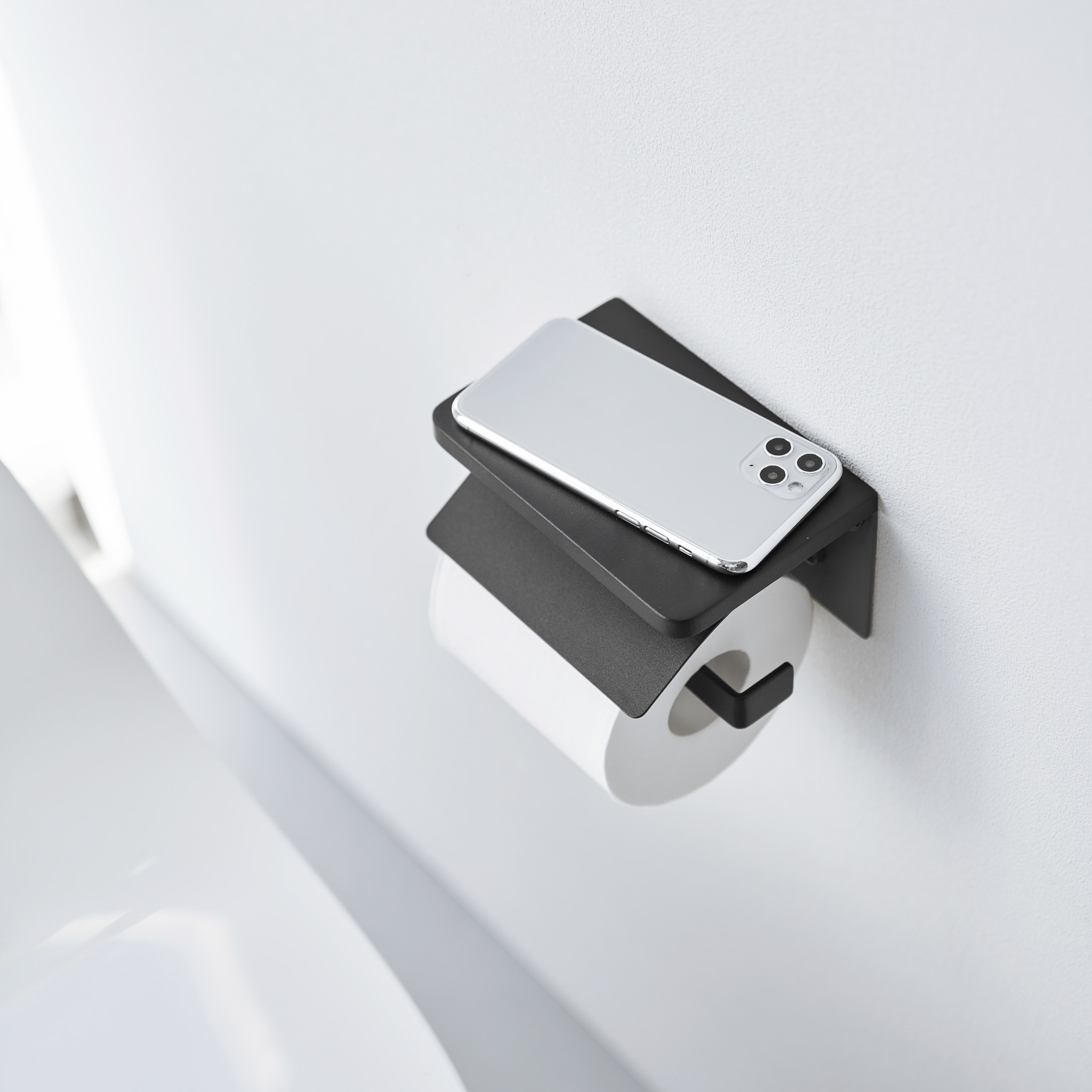 Yamazakin seinään kiinnitettävä wc-paperiteline yhdistää käytännöllisyyden ja tyylikkään muotoilun. Tasolle voi asettaa esimerkiksi puhelimen, hajusteen tai muita wc-tilan tarpeita. Teline asennetaan helposti mukana tulevilla nastoilla tai ruuveilla. Pelkistetty ja moderni ilme sopii kauniisti osaksi skandinaavista kylpyhuone- tai wc-sisustusta.